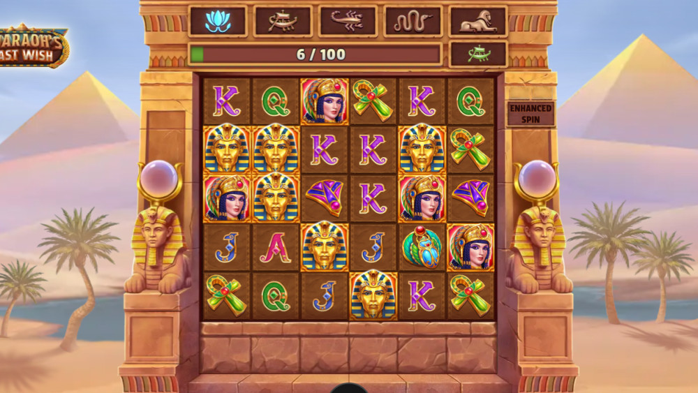 Pharaoh’s Last Wish is a 6×5 reel slot with cluster pays mechanics and a maximum win of x10,000 the player’s bet.