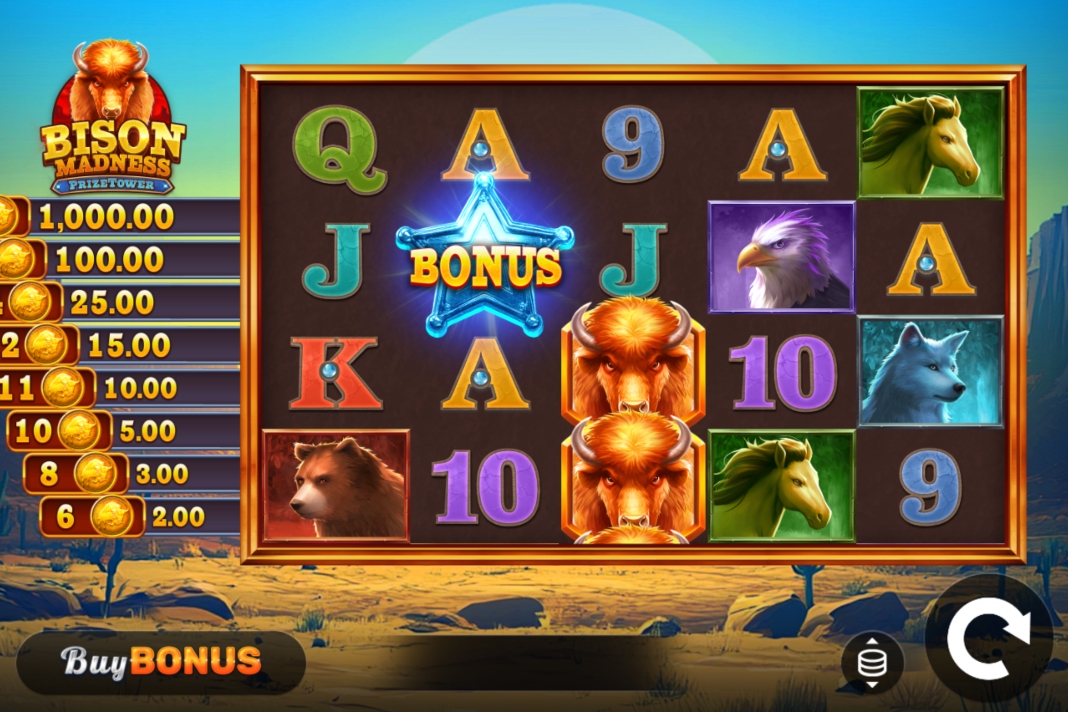 Bison Madness PrizeTower is a 5×4 reel slot with 1,024 paylines and a maximum win of x1,000 the player’s stake.